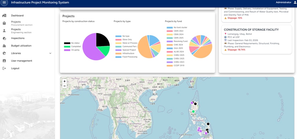 A comprehensive Infrastructure Project Monitoring System designed for government agencies to efficiently plan, track, and manage public infrastructure projects. This system centralizes project data, enabling real-time monitoring of project progress, budgets, timelines, and resources.